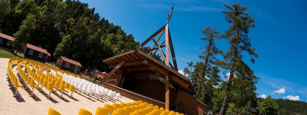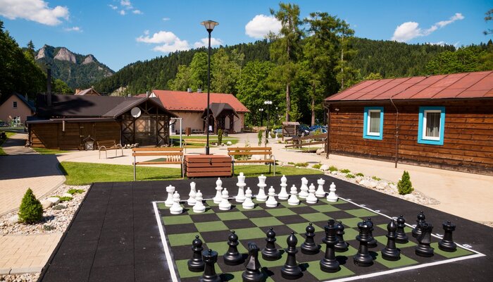 Široká rozloha, kde sa nachádza hotel, reštaurácia, jazierko, vonkajšia terasa, super-super vonkajšie fit náradia, na ktorom sa vyšantili všetci, chatky s možnosťou vonkajšieho posedenia a grilovania, detské ihriská a topka bolo veľké zelené ihrisko na futbal a tribúna, kde sa organizujú veľké akcie. To celé je zasadené do nádhernej scenérie lesa s výhľadom na 3 koruny.